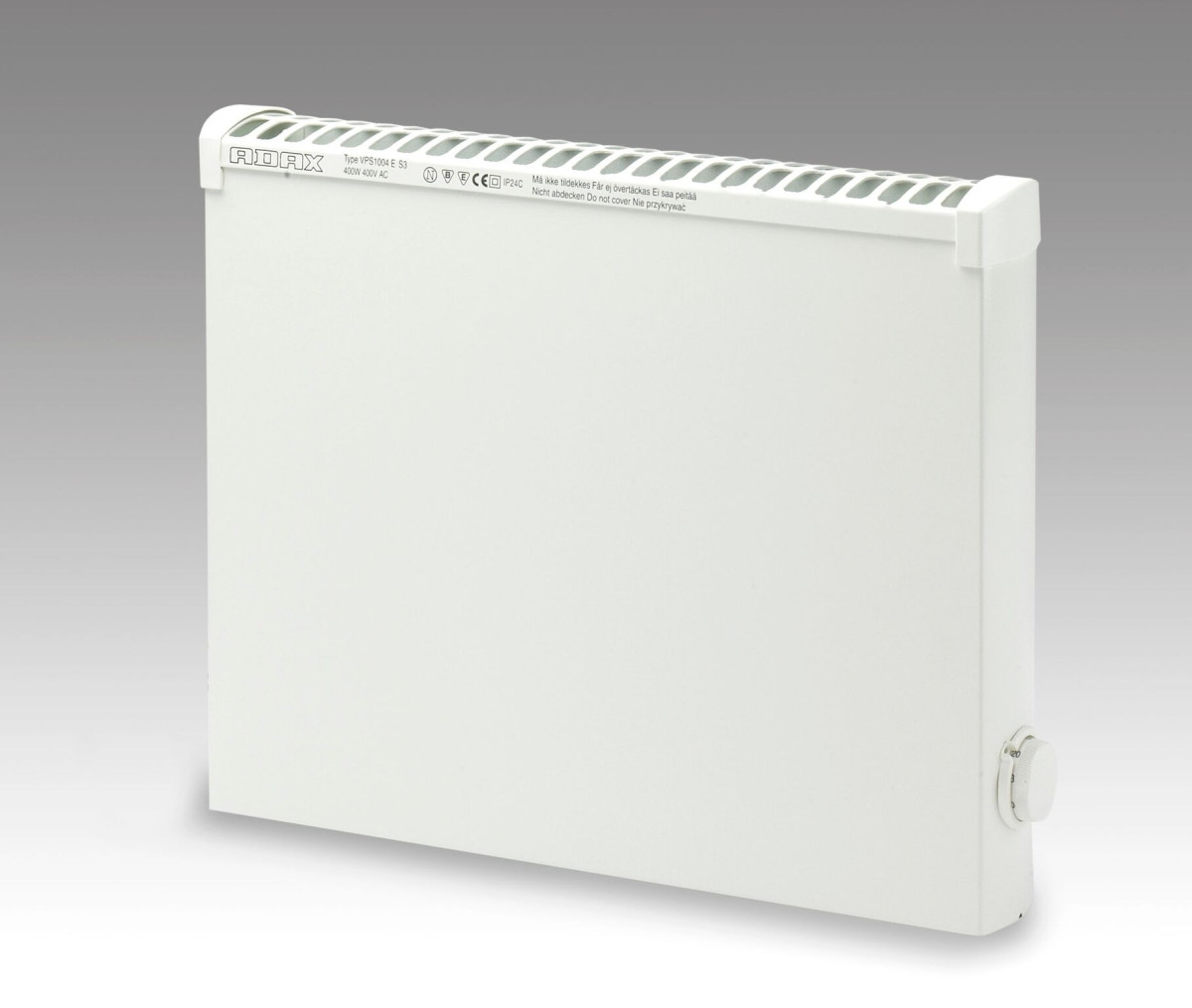 Okos és energiatakarékos Adax VPS 1004 KBT elektromos fűtőpanel Bluetooth vezérléssel, vizes helyiségekbe is ideális, 400 W teljesítménnyel.
