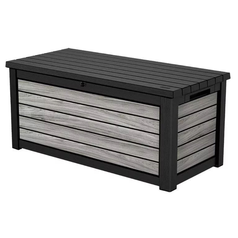 Praktikus és stílusos megoldást keres kerti felszerelése tárolására? A Keter Deco 630 l Storm grey kerti tároló fa hatású megjelenésével, nagy teherbírásával és akár 2 személy számára is alkalmas ülőfelületével tűnik ki. A beépített fogantyúk és a fedél gázrugós nyitószerkezete ideálissá teszik mindennapi használatra.