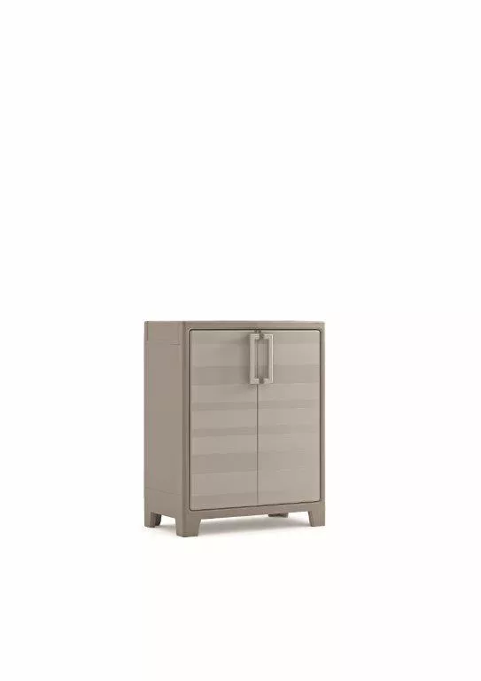 Keter Gulliver Low szekrény ideális választás kisebb helyiségekbe, például garázsokba, műhelyekbe vagy teraszokra. Alacsony magasságának köszönhetően elfér munkapadok, polcok alatt is. Tartós kialakítása UV-védelemmel és IPX3 vízállósággal lehetővé teszi használatát fedett kültéri terekben is. Kompakt megoldás hatékony tároláshoz beltéren és kültéren egyaránt.