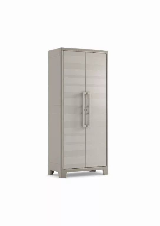 A tartós műanyag szerkezetet UV-védelem óvja az öregedéstől. Az IPX3 védelem alkalmassá teszi párás, nedves környezetbe is. Az Assisted Opening System (AOS) rendszer biztosítja a zökkenőmentes és stabil ajtózáródást. Az ötödik láb növeli a szekrény stabilitását, a zárhatóság pedig extra biztonságot nyújt.