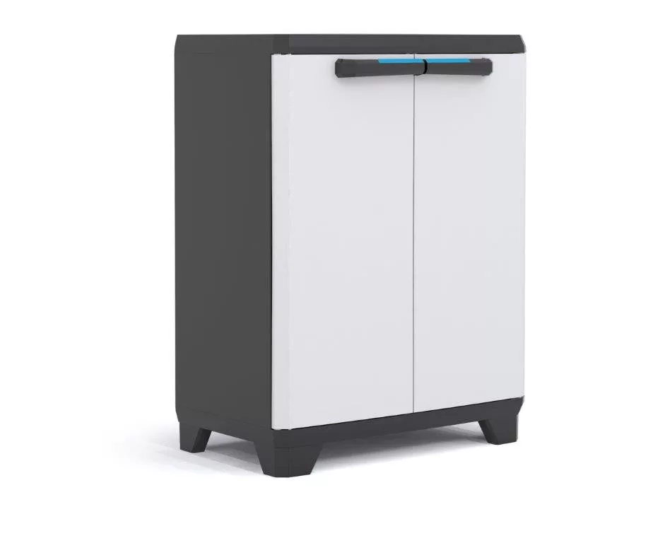 A Keter Linear Low szekrény bármilyen helyiségbe illeszkedik – legyen az fürdőszoba vagy műhely. 90 cm magas, így könnyedén elfér ablak alatt vagy egy fülkében. A kétszárnyú ajtók simán nyílnak, hozzáférést biztosítva a belül elhelyezett állítható polchoz.