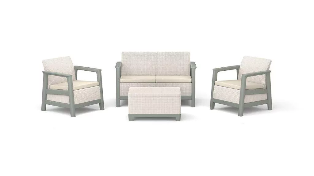 Keter Scandi kerti bútor szett kétszemélyes kanapé + 2 szék + tárolóasztal bézs szürke