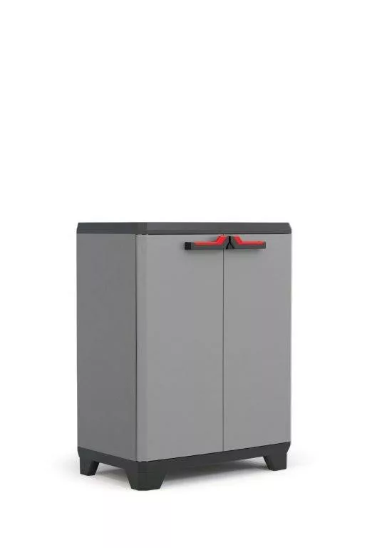 A Keter Stilo Low tárolószekrényt használhatja pincében, műhelyben, garázsban, fészerben vagy a verandán. A szekrény belsejében 1 polcot talál, amelyet szükség szerint elhelyezhet. Gond nélkül 15 kg-ig bírja. A szekrény összeszerelése nagyon egyszerű és gyors, körülbelül 10 percet vesz igénybe. Az ajtókilincseken lévő fix fülre lakatot helyezhet (nem tartozék), és reteszelheti a szekrényt. A lábak magassága tetszőlegesen beállítható a csavaros mechanizmus segítségével.