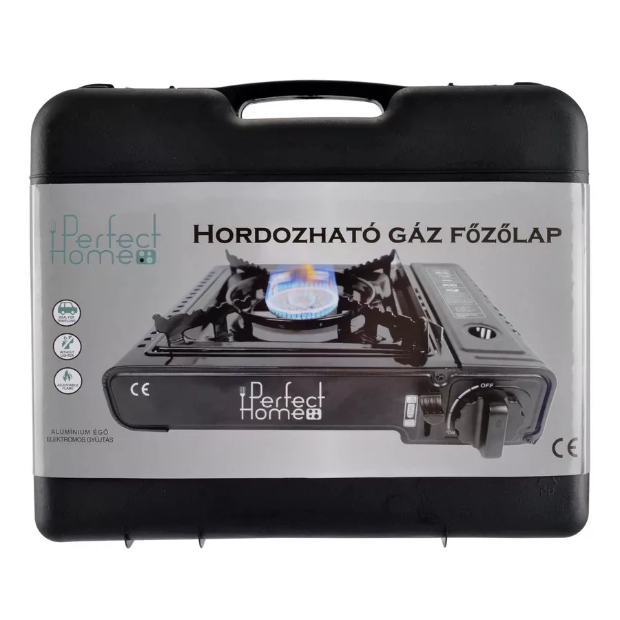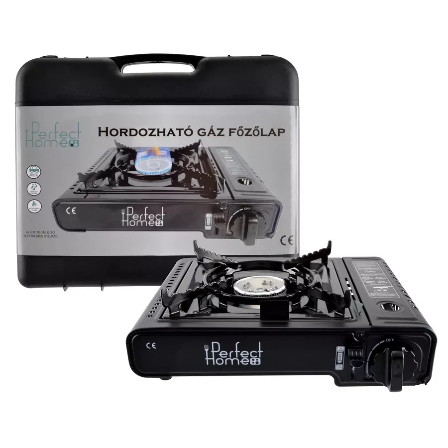 Perfect Home Hordozható gáz főzőlap rozsdamentes fekete 2,5 kW 17886