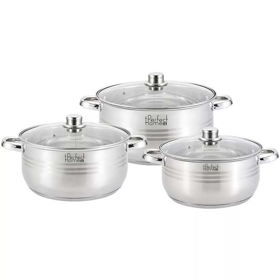 Perfect Home Rozsdamentes edénykészlet / lábas szett üvegfedővel ~5,5/7/8,5 liter 28301