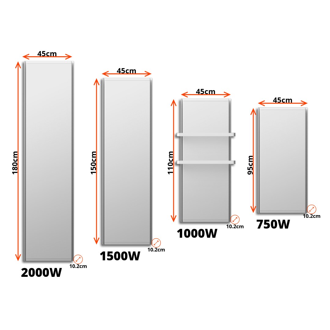 Vertikális kialakítású fali Wifi-s fűtőpanel Dual-Therm technológiával és LED éjszakai fénnyel.
