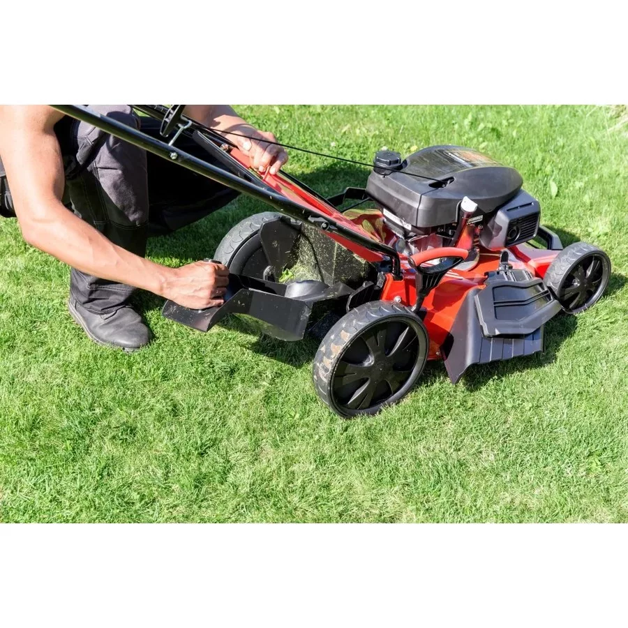 51 cm vágószélességével az 5231 SP-H benzines fűnyíró ideális partner a közepes és nagy méretű kertekben 1.800 m2 területig. A vágómagasság állítás központilag 7 fokozatban 30 mm-80 mm-ig történik. A 3,2 kW erős motor biztosítja a szükséges energiát a nagy fűfelületek vágásához és azonfelül energiát ad a kerékhajtáshoz. Vágás, gyűjtés, oldalkidobás és mulcsozás a 4INONE funkció révén lehetséges. A nagy, golyóscsapágyas XXL könnyen futó kerekek és az ergonomikusan kialakított tolókar további kényelmet biztosít a solo by AL-KO 5231 SP-H fűnyíró használatakor. A nagy, aerodinamikus acéllemez vágóház hatékonyan gondoskodik a levágott fű összegyűjtéséről, ami a 70 literes fűgyűjtő kosárban landol.