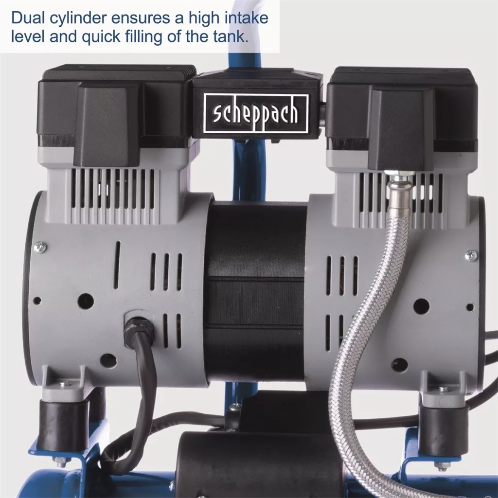 Scheppach HC 08 Si - ultracsendes olajmentes kéthengeres kompresszor, 6 l