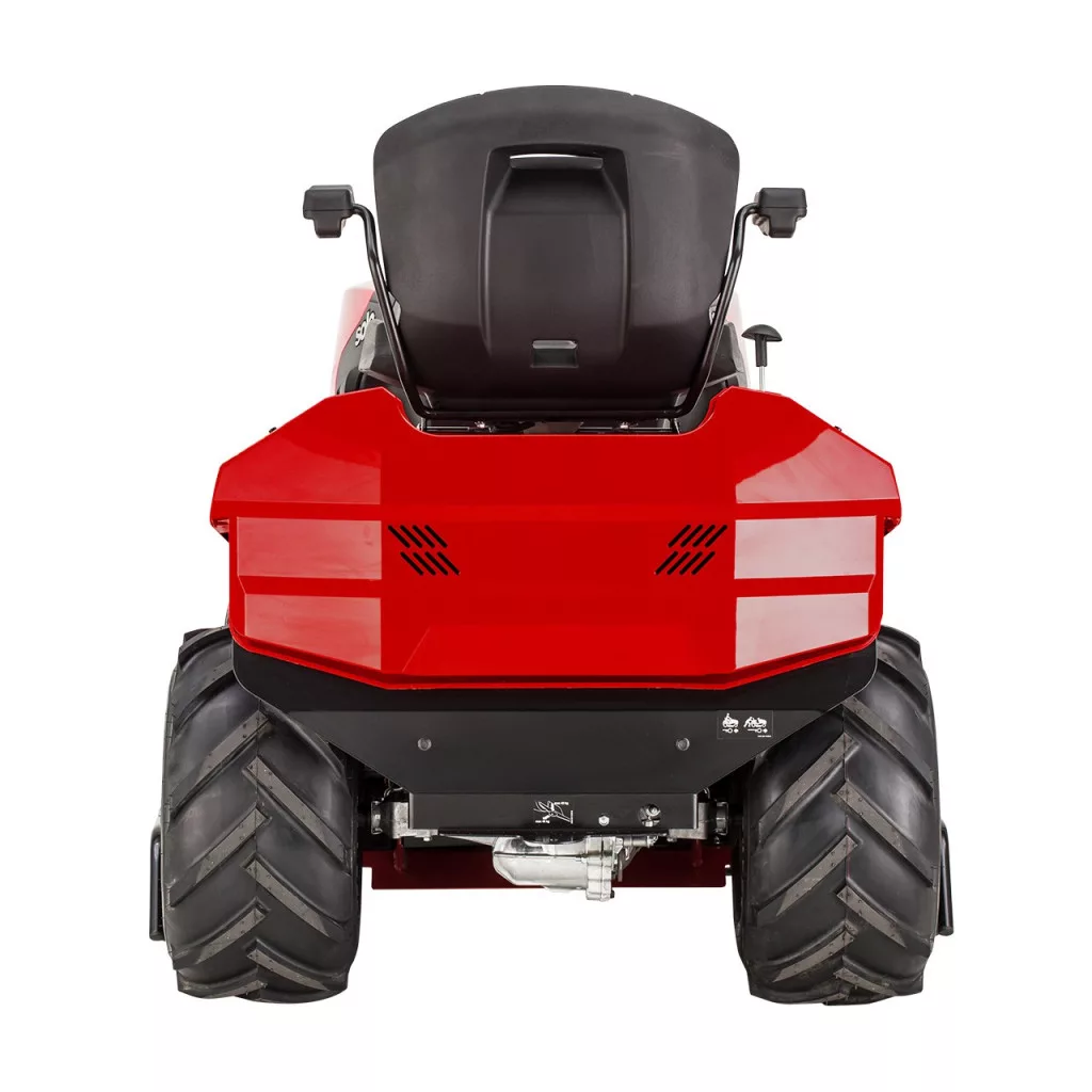 A 110 cm széles, három pengével felszerelt vágóasztalnak és a 11 km/h maximális sebességnek köszönhetően akár 9000 m2-es nagy kertekben is hatékonyan nyírható a füvet. Télen a vágóasztal könnyen leszerelhető karbantartás céljából, vagy a traktor hóeltakarító járművé alakításához. A 20 colos terepjáró gumiabroncsok kiváló tapadást biztosítanak bármilyen felületen. A vágási magasság kényelmesen állítható 7 fokozatban 30 mm-től 90 mm-ig.