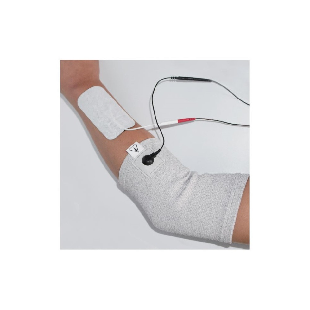 Az elektróda tappancsokkal szemben tartósabb, pontosabban illeszkedik, és ruha alatt is kényelmesen viselhető. Segíthet a könyök rugalmatlanságának csökkentésében, valamint a mozgás megkönnyítésében – akár munka vagy otthoni tevékenységek közben is alkalmazható.