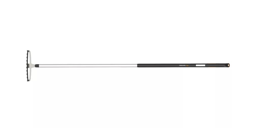 Elnyűhetetlenül tartós rozsdamentesacél-fej 10 foggal, keskenyebb helyeken, szűk ágyásokban történő gereblyézéshez és talajigazításhoz. Egyedi kialakítású edzettalumínium-nyele segít, hogy kisebb erőkifejtés mellett azonos hatékonyságot érhessünk el. Kény