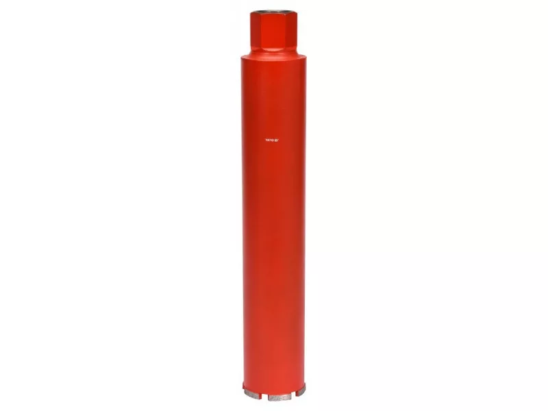 YATO koronafúró fúróállványhoz kialakítva nem kalapács működésre - száraz és nedves – fúróállvánnyal (például YT-81980). Lehetővé teszi a gyors és precíz lyukfúrást, akár állvány nélkül is, betonban, silikátban, például elektromos dobozok alatt, mennyezetek fúrása csövek és kábelek számára, kábelutak vagy szellőzőcsatornák telepítése.lézerhegesztett szegmensek ellenállnak a túlmelegedésnek, ami a betonacél rudak kivágásakor előfordulhat, akár száraz munka közben isa lágy kobaltréteg a szegmensben lehetővé teszi a „felülkézből” fúrást betonacélban, a gyémántot is feltárva, állvány nélkülnövelt hőállóság, kopás- és mechanikai sérülés elleni védelem./li>5/4” szár illik minden piaci eszközhözkorona hossza: 430 mm. Használati figyelmeztetések: Figyelem! Mindig használjon személyes védőfelszerelést a munka során.
