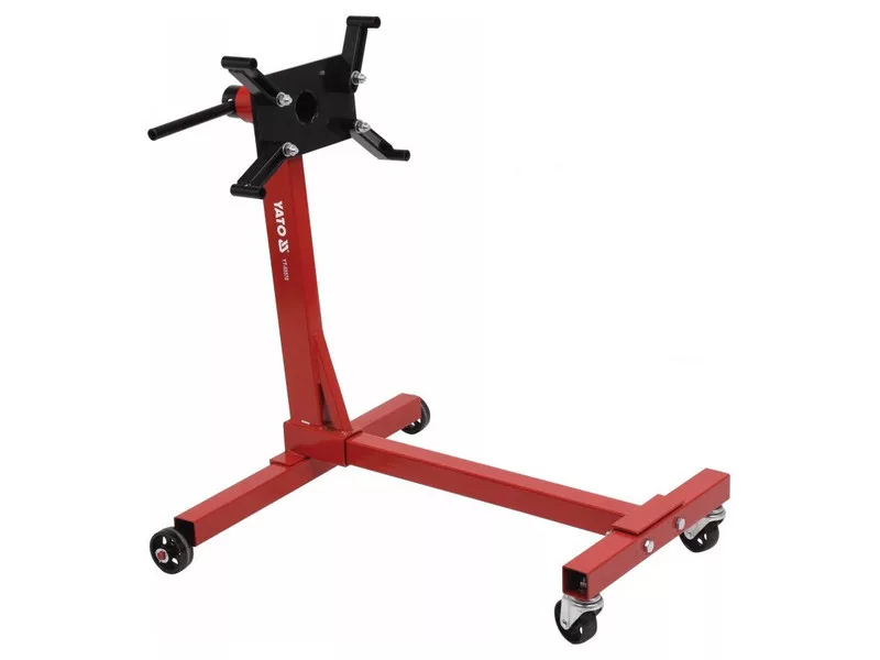 Motorkezelő állvány 450 kg-ig terhelhetőséggel. Négy fém kerékkel rendelkezik - ebből kettő csavart, hogy megkönnyítse a manőverezést. A forgó fej négy állítható mancssal lehetővé teszi a motor biztonságos pozicionálását a 360 fokban.