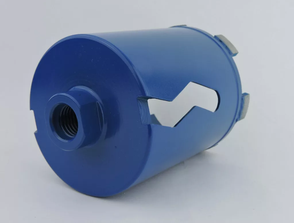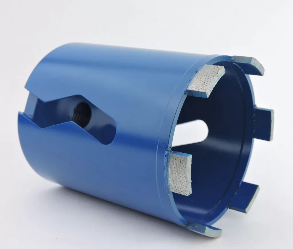 Zenesis gyémánt dobozfúró 82 mm-es átmérővel beton, vasalt beton, tégla fúrására, rendezett gyémánt szegmenssel M16 belső menettel.