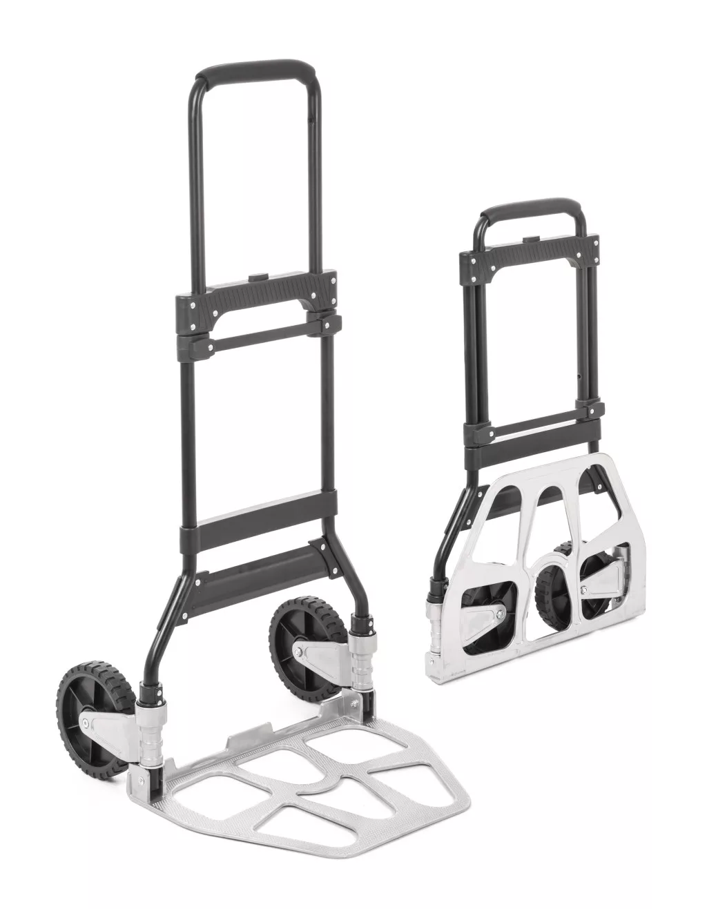 A kézikocsi szerkezete alumíniumból és acélból készült, így ellenáll a nehezebb igénybevételnek és a mindennapos használatnak. A nagy 17 cm-es kerekek különféle felületeken is jól működnek. A behúzható fogantyú megkönnyíti a szállítást és a tárolást. Összecsukva mindössze 48,5 × 83 × 6 cm méretű, súlya pedig csak 6,1 kg, így akár autó csomagtartójában is könnyedén elfér.
